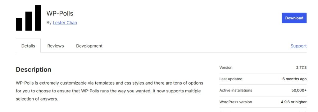 A lightweight poll plugin for WordPress that can help you create polls, perform market research, and track result in real-time. It is commonly used by WordPress developers because of its widget support, market analysis, and shortcode integration.