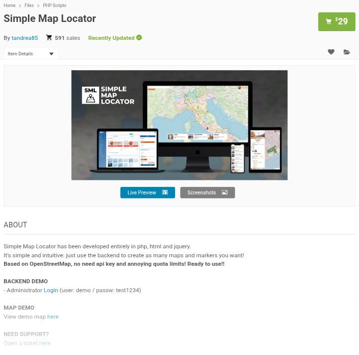 Simple Map store locator WordPress comes with basic features for setting up your store location. Although the features are limited when compared to other plugins, you can use shortcodes to integrate Simple Store on your website, making it a wonderful plugin for your WordPress site.